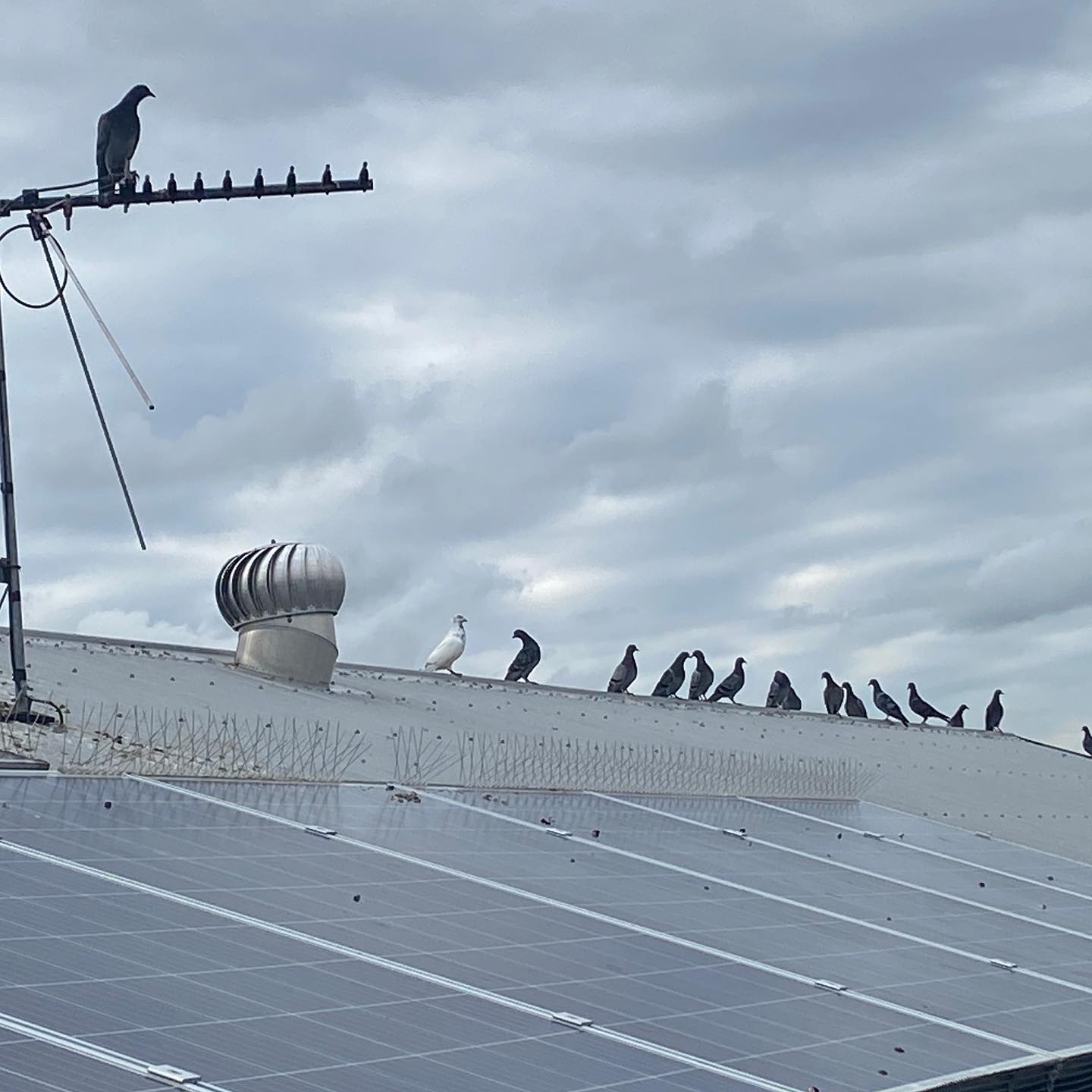 Birds, especially pigeons, have discovered that the cramped space between solar panels and the roof is an even better roosting site than the