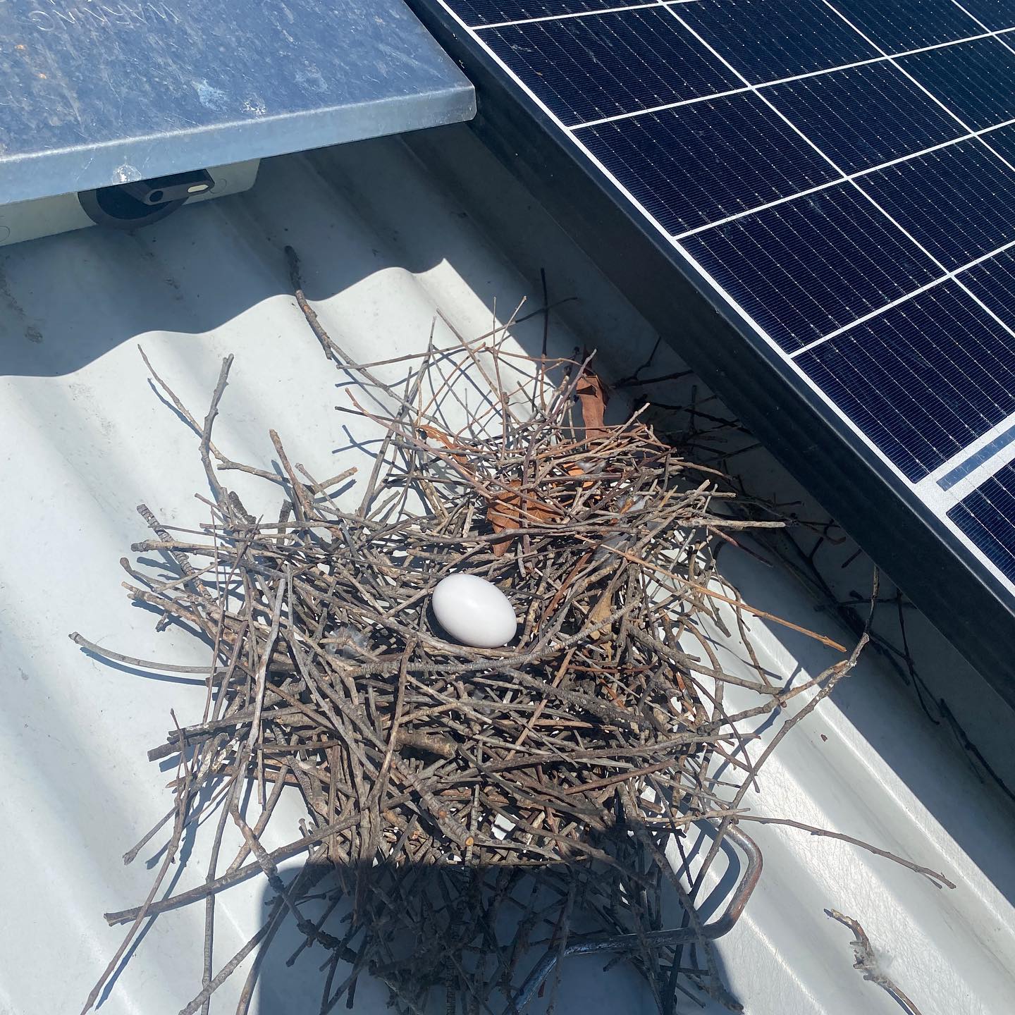 Nesting under the panels also means that the birds will sit on the edges of the panels and do their messy business and cause smears all over the place, thereby lowering the efficiency of your expensive solar panels or even damaging them.